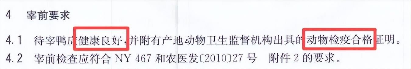 《畜禽屠宰操作規程 鴨》對鴨子宰前的要求(圖源:參考資料[4])