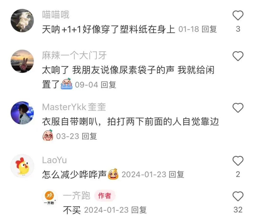確實,一些冬季外套設計時考慮的大都是戶外場景,使用了化纖的、偏硬的面料或塗層,沒把靜音需求考慮在內。