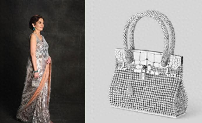 她身着點綴着銀色亮片的紗麗,佩戴着祖母綠耳環,而她手中的HermèsSacBijouBirkins手袋尤爲引人注目。這款包是全球最貴的愛馬仕包款之一,標價200萬美元(約合1425萬元人民幣),且全球僅限售三隻。
