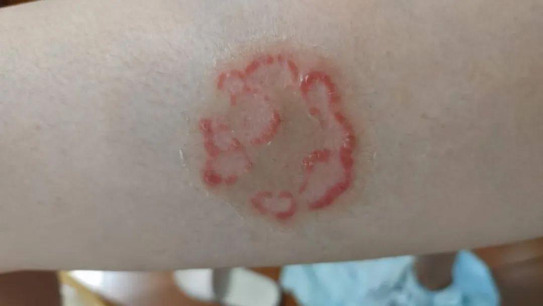 情況穩定後腿上殘留的斑塊。圖片來源:被訪者提供