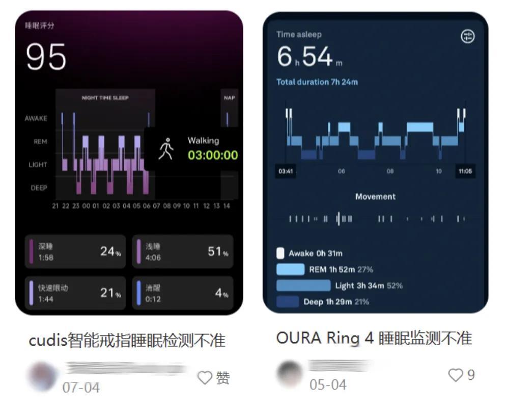 而當你可以掌控自己什麼時候睡覺、什麼時候起牀,一個精準、量化的睡眠指標又顯得沒有必要了,甚至當感受和App上的分數不一致時,有人會困惑到底該相信自己的感受還是戒指上的數字。“明明能睡得很滿足的醒來,爲什麼還要在乎今天的睡眠質量是80分還是85分?”