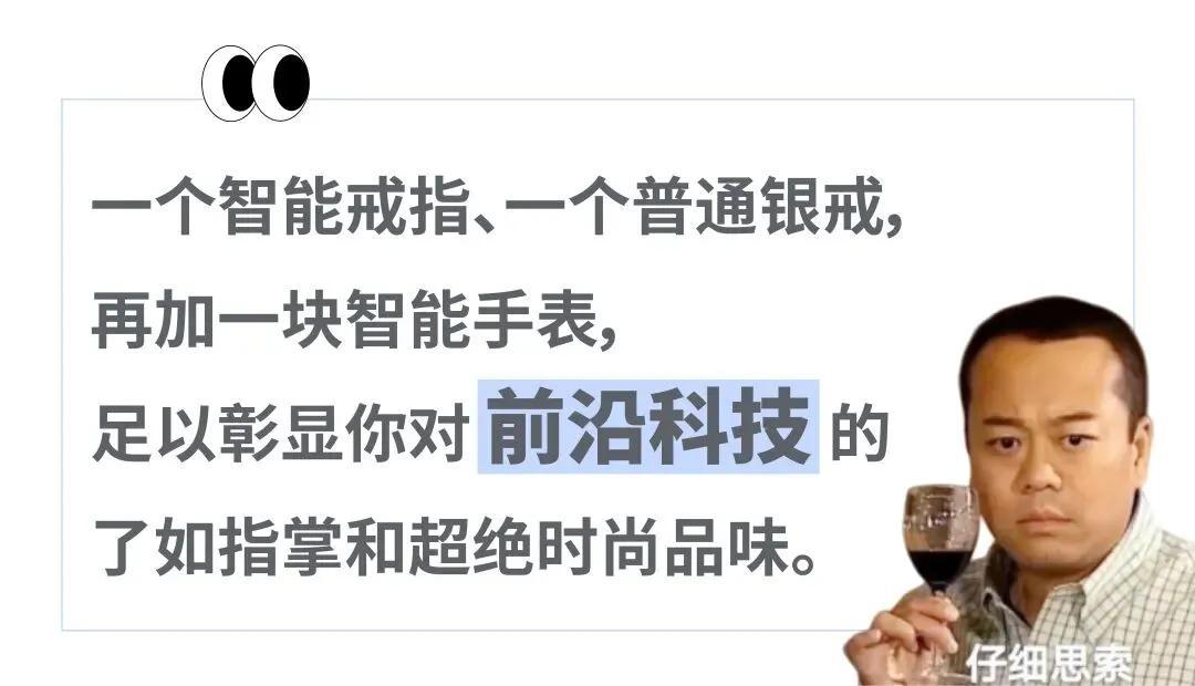 而如果你恰好是一個活躍在金融領域的科技男,兩隻手上分別戴一個智能戒指、一個普通銀戒,手腕再戴一塊智能手錶,則可以彰顯你對前沿科技的瞭如指掌和超絕時尚品味。