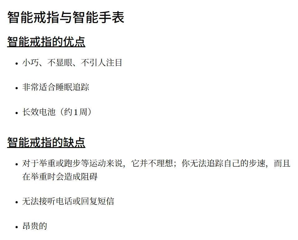比起智能手錶,智能戒指的優勢被總結爲“續航時間更長”、“睡覺不用摘”,更輕更小更無感,適合“想知道自己睡覺時的詳細身體數據,又不想睡覺的時候戴智能手錶的人”。