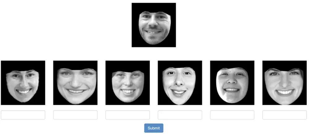 接着,研究者採用了兩種評判方式,一種是讓 153 名參與者在 6 張照片中按照與目標照片的相似度和婚姻可能性進行排序,另一種是採用一個叫做 VGFace2 的面部識別算法來進行同樣的照片排序。