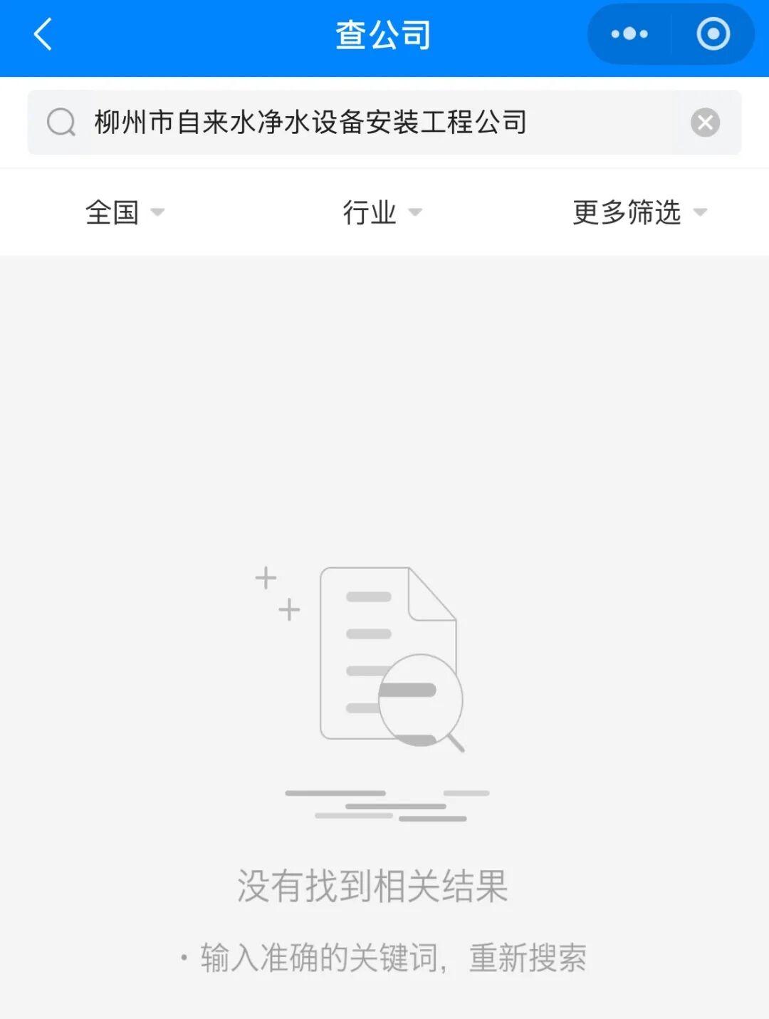 記者隨後通過國家企業信用信息公示系統及“企查查”App查詢,均未找到“柳州市自來水淨水設備安裝工程公司”的任何註冊信息。