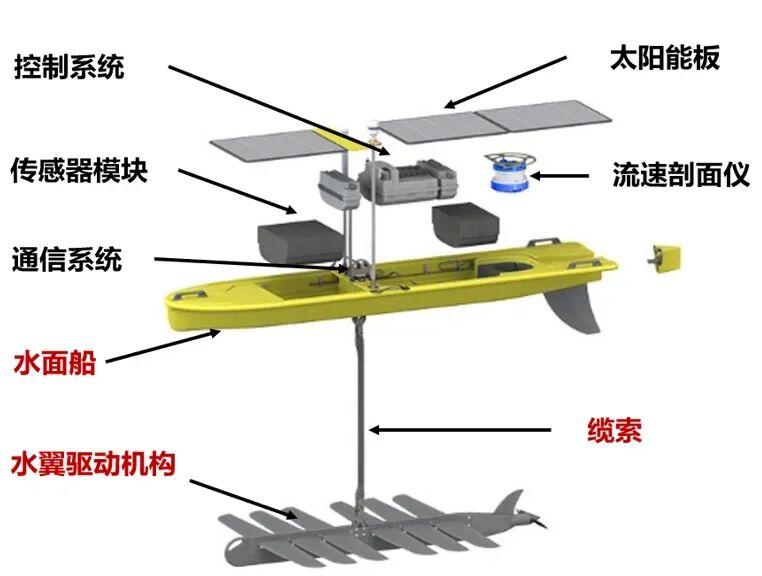 根據我國不同海域的波浪大小,我們合理地設計了船體的運動週期,進一步提高了水翼的推進效率,讓無人船遊得更快、遊得更久。結合光伏供能與儲能系統,它能在海上實現超長續航,成爲新一代智能海洋探測裝備。