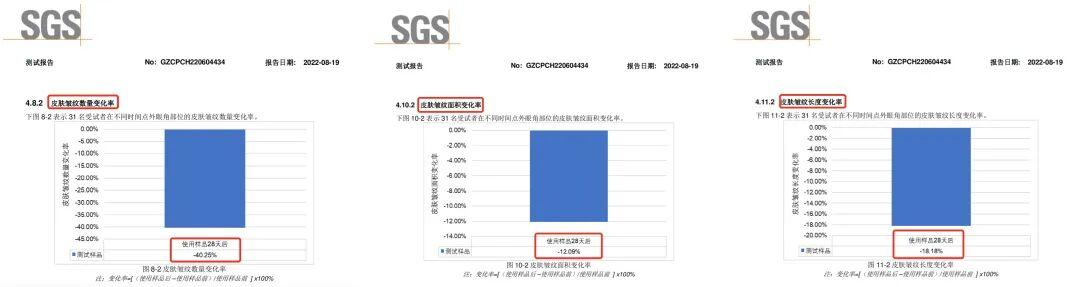28天的測試裏,31位受試者的外眼角眼部皮膚皺紋的數量、長度、面積都有不同程度且顯著性的減少,皺紋整個拿捏住!