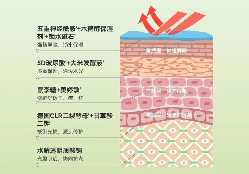 復配的三重神經酰胺和5D玻尿酸,不僅能修護皮膚屏障,給肌膚餵飽水,還能牢牢地將“水分子”鎖進肌膚裏修護。