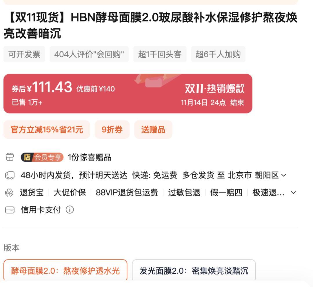今天的專場裏,還給大家挖到了熬夜黨專屬的“肌膚救星”——HBN多效煥亮面膜和HBN酵母水光嫩膚面膜2.0!