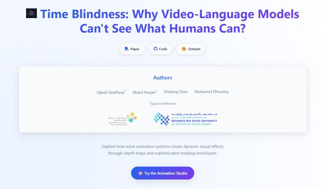 是今年5月發的,叫《Time Blindness: Why Video-Language Models Can’t See What Humans Can?》