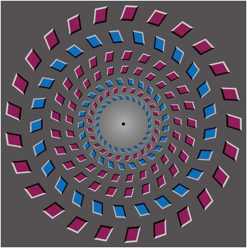 這樣的視錯覺圖,基本上都是利用了我們這個會自己運動的特徵,來做出動態效果的。