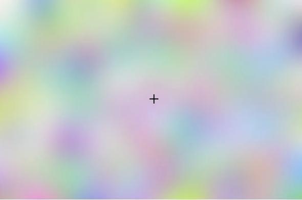 聽起來挺繞的,但如果你想試一下,刻意控制眼球靜止不動的話,你可以放大這張圖,然後刻意的牢牢盯住中間的十字。