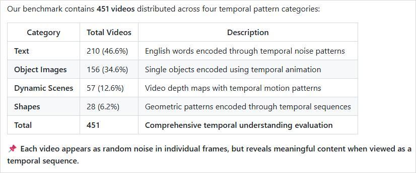 這項研究設置了一個基準,叫做SpookyBench,合成了一堆由噪點組成的視頻,是黑白的。