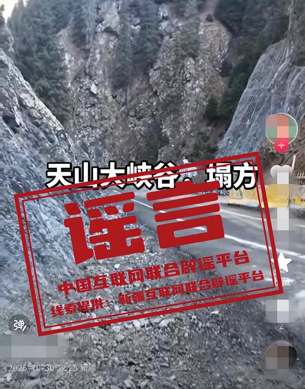 詳情:近日,有網民在網絡平臺發佈視頻並配文稱“天山大峽谷塌方”,引發關注。經烏魯木齊市南山景區管理委員會覈實,該情況不屬實,相關信息系謠言。網傳圖片實爲2025年10月24日,烏魯木齊中佳勘察設計有限公司在天山大峽谷景區進入山溝1.3公里處進行山體排險作業時的畫面。