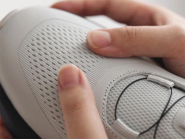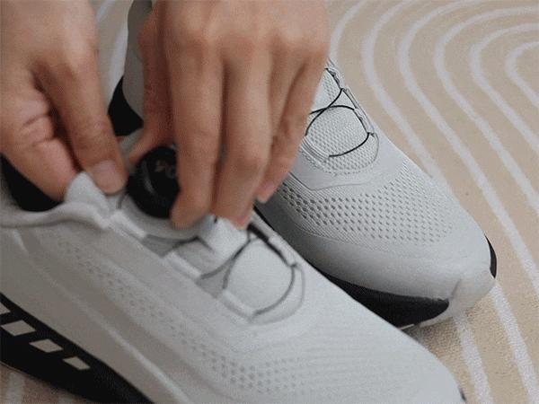 向上輕拔旋鈕即可鬆開鞋帶;想要收緊鞋帶只需按下旋鈕後順時針旋轉旋鈕,輕鬆穿脫!
