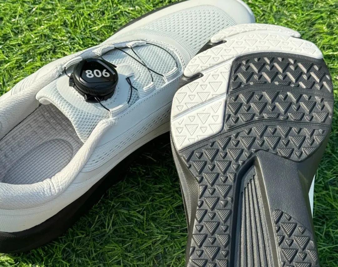 鞋底是縱橫交錯的紋路,像賽車輪胎一樣!