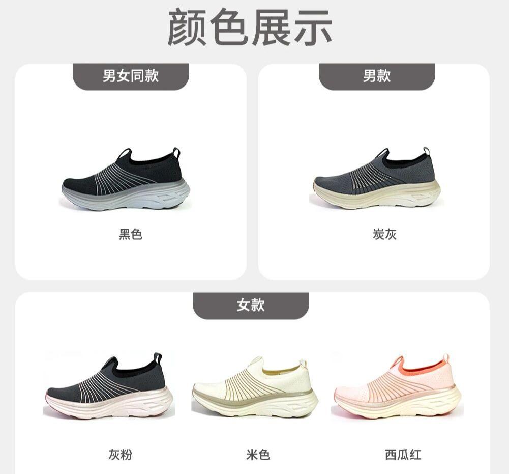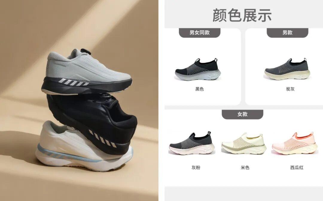 “飛織閃穿鞋”有5個顏色可選,黑色是男女同款,還有男款灰色+女款白色、西瓜紅、灰粉!