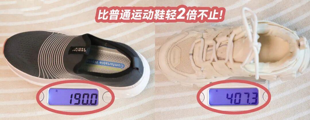 這雙我做的一個對比,這雙鞋1只的重量只有190g,是普通運動鞋的二分之一
