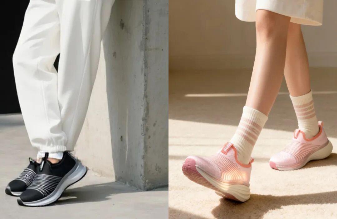 如果說“流體閃穿鞋”更偏向專業運動鞋,那這雙“飛織閃穿鞋”就更偏向休閒鞋。
