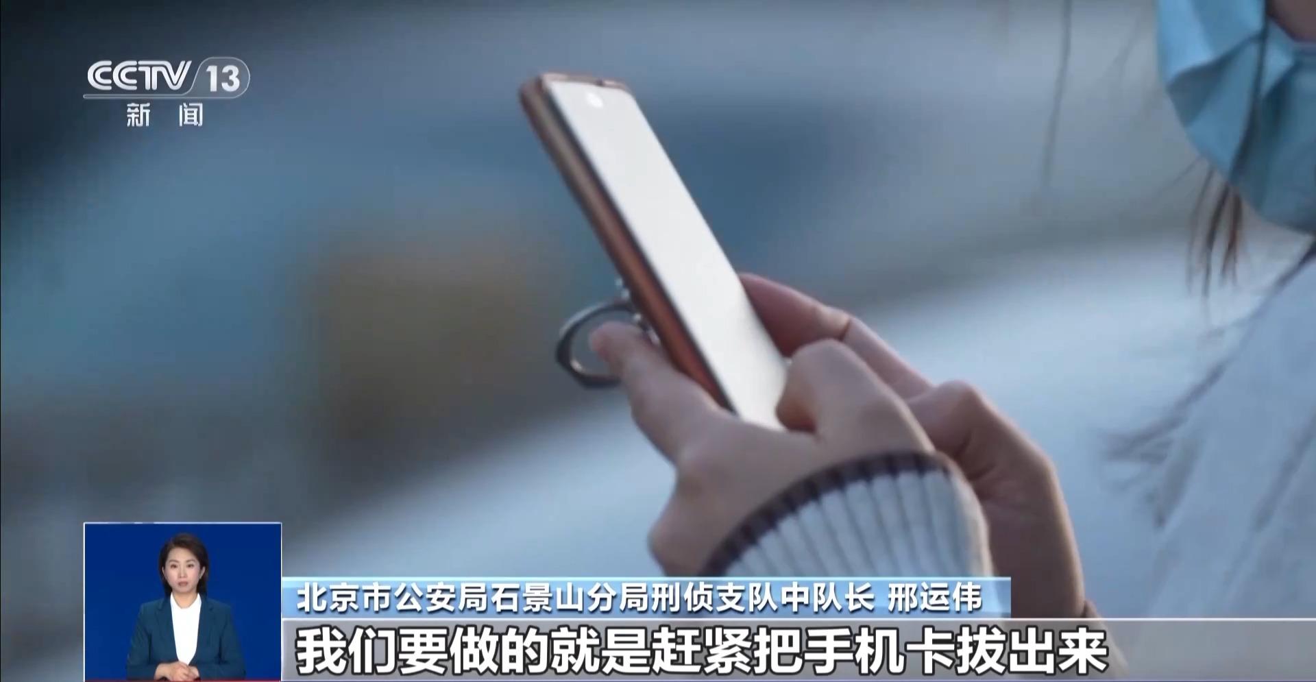 北京市公安局石景山分局刑偵支隊中隊長 邢運偉:手機被遠程控制或者黑屏的話,關機是關不了的,我們要做的是,趕緊把手機卡拔出來,如果連着家裏Wi-Fi,一定要把Wi-Fi給關了,這樣對方就不能肆意操作我們的手機了。下一步就要及時給各個銀行打電話,把我們的銀行卡趕緊掛失,以免對方還繼續刷我們的錢。隨後就要趕緊打110報警,讓警方及時對銀行卡進行止付。