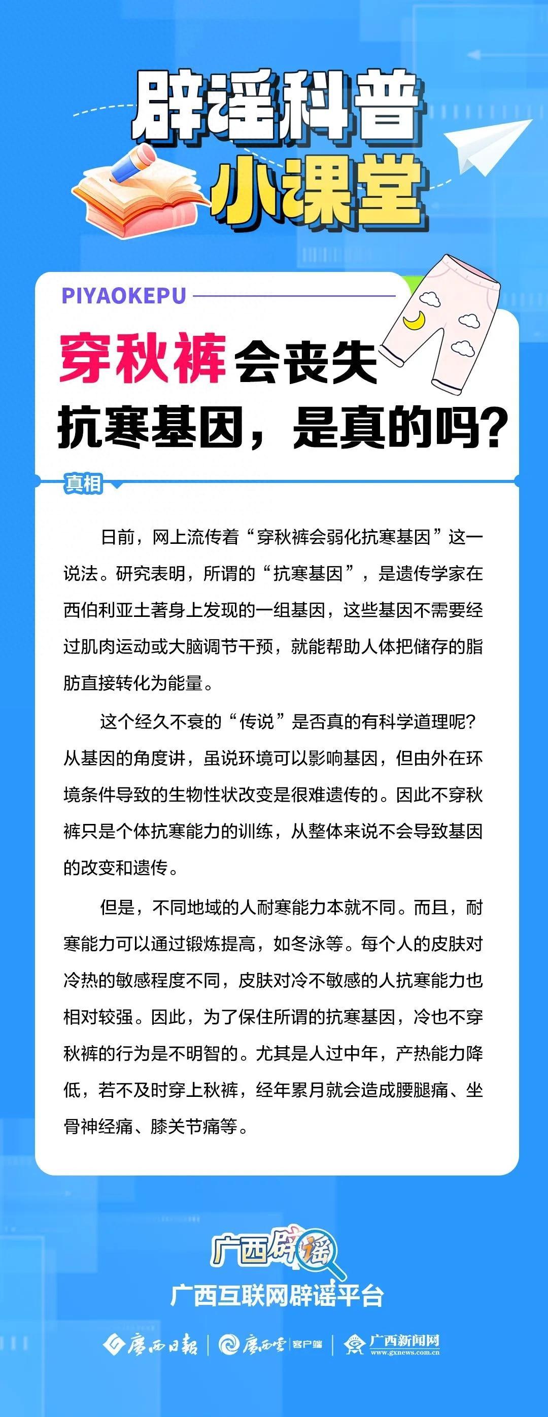 闢謠科普小課堂 | 穿秋褲會喪失抗寒基因,是真的嗎?