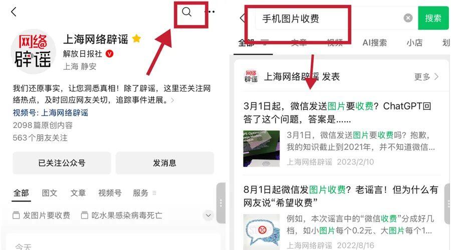可以通過權威機構公衆號的“搜索”功能覈查信息
