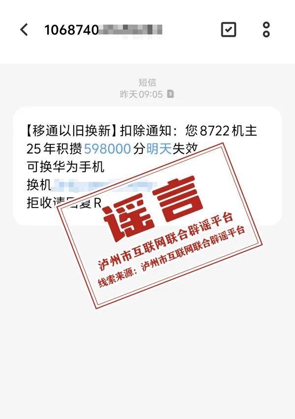 詳情:近日,瀘州有市民收到“通訊積分失效”“積分換機”的提醒短信。