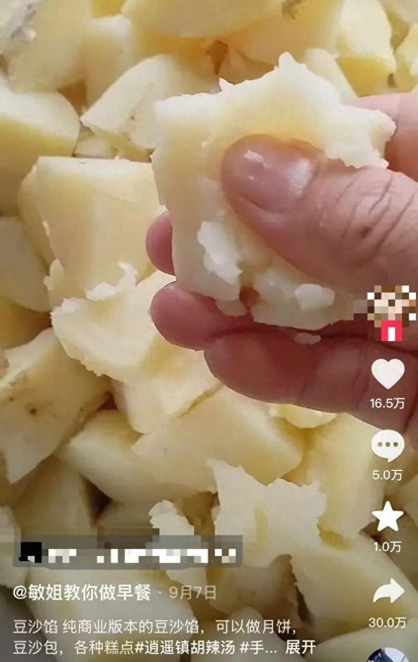 網友驚訝地評論:“難怪自己在家復刻不了外面賣的豆沙餡兒,原來豆沙是把土豆殺了……”
