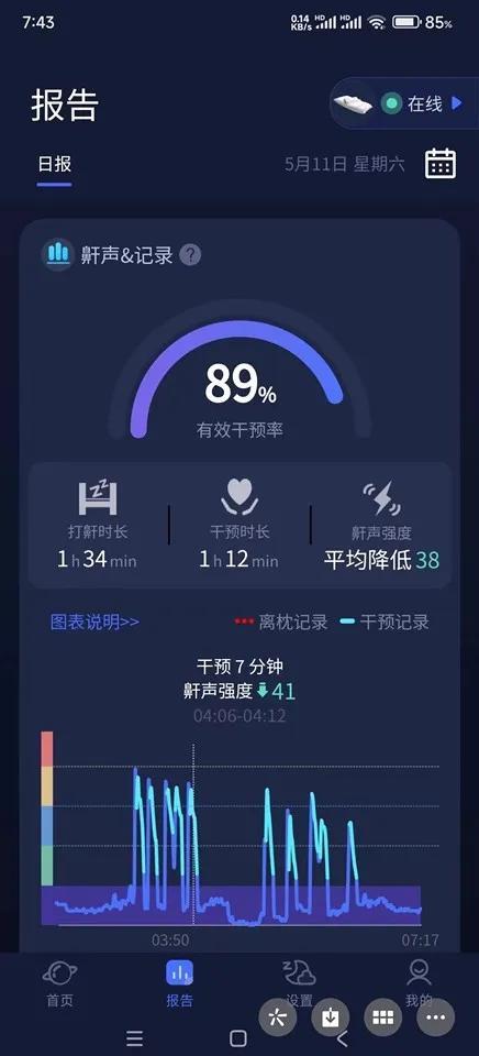 添眠枕有爲大家貼心地準備了智能APP,它不僅可以設置枕頭止鼾的效果,而且還爲你生成一個巨巨巨詳細的睡眠報告!