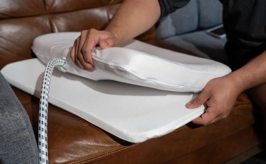 我們將枕套套上試睡,女同事說 氣囊的鼓起是輕柔無感的,不會打擾正常睡眠。她覺得枕面只是輕輕微動的感覺,就像睡覺時手自然而然伸到枕頭底下,而且比手臂更輕柔。