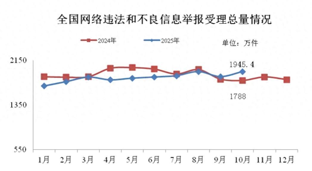 2025年10月全國受理網絡違法和不良信息舉報1945.4萬件