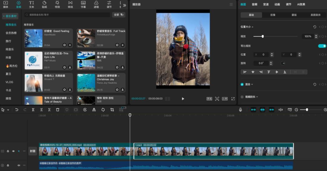 接着把你準備好的 AI 鏡頭剪進去,簡單配上 BGM,就這樣,一個子彈時間視頻就誕生了。雖然效果肯定比不上 VOGUE 盛典那種專業級別的,但一張照片加上能薅羊毛的 AI 工具,要啥自行車?