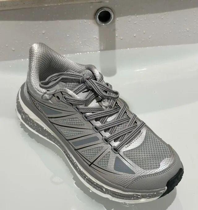測試中,把手機放進鞋面,光線直接能透出來,可見鞋面有多輕薄~