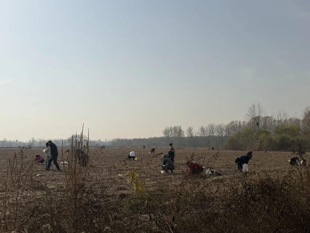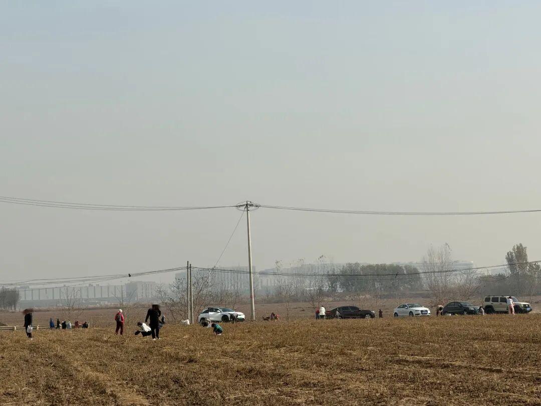 記者在大興現場探訪發現,這三處地點均爲收割完畢的田地。第一處是蘿蔔地,但現場光禿禿已沒有任何農作物;第二處是紅薯地,聚集着不少拿着工具的大人孩子,因可挖的紅薯所剩無幾,大家紛紛駕車離開,尋找下一處“打野點”;第三處是黃豆地,有數十人正彎腰忙着撿地裏遺留的黃豆。