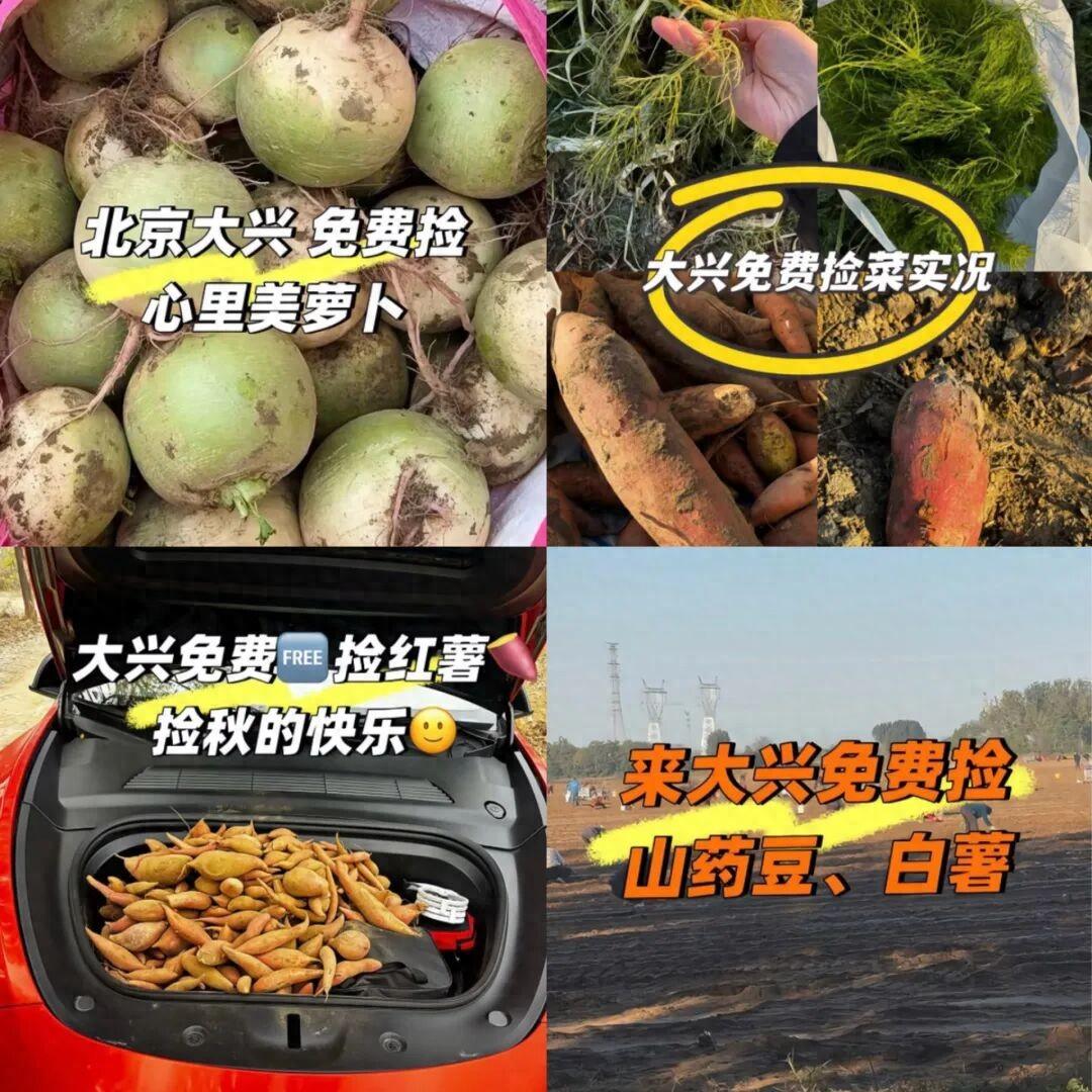蘿蔔、洋姜、紅薯、香菜、大白菜……統統免費撿?記者在社交網絡平臺輸入關鍵詞“北京免費撿菜”後,跳出大量帖子,推薦前往京郊農田,享受田間地頭的“收穫喜悅”。不少帖子照片顯示,撿來的蘿蔔白菜等塞滿了車輛後備廂,下面評論區是清一色的“求地址”留言,而博主的回答也有着統一模板,“先關注,私信發”。