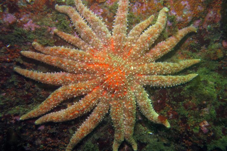 怪病在海星種羣中快速蔓延。短短几年內,從阿拉斯加的冰冷深海到墨西哥灣的溫暖淺灘,超過20種海星的數量急劇下降。特別是那些直徑可達一米、有着多達20條手臂的多腕葵花海星(Pycnopodia helianthoides),數量減少了90%,被IUCN評爲“極危”。
