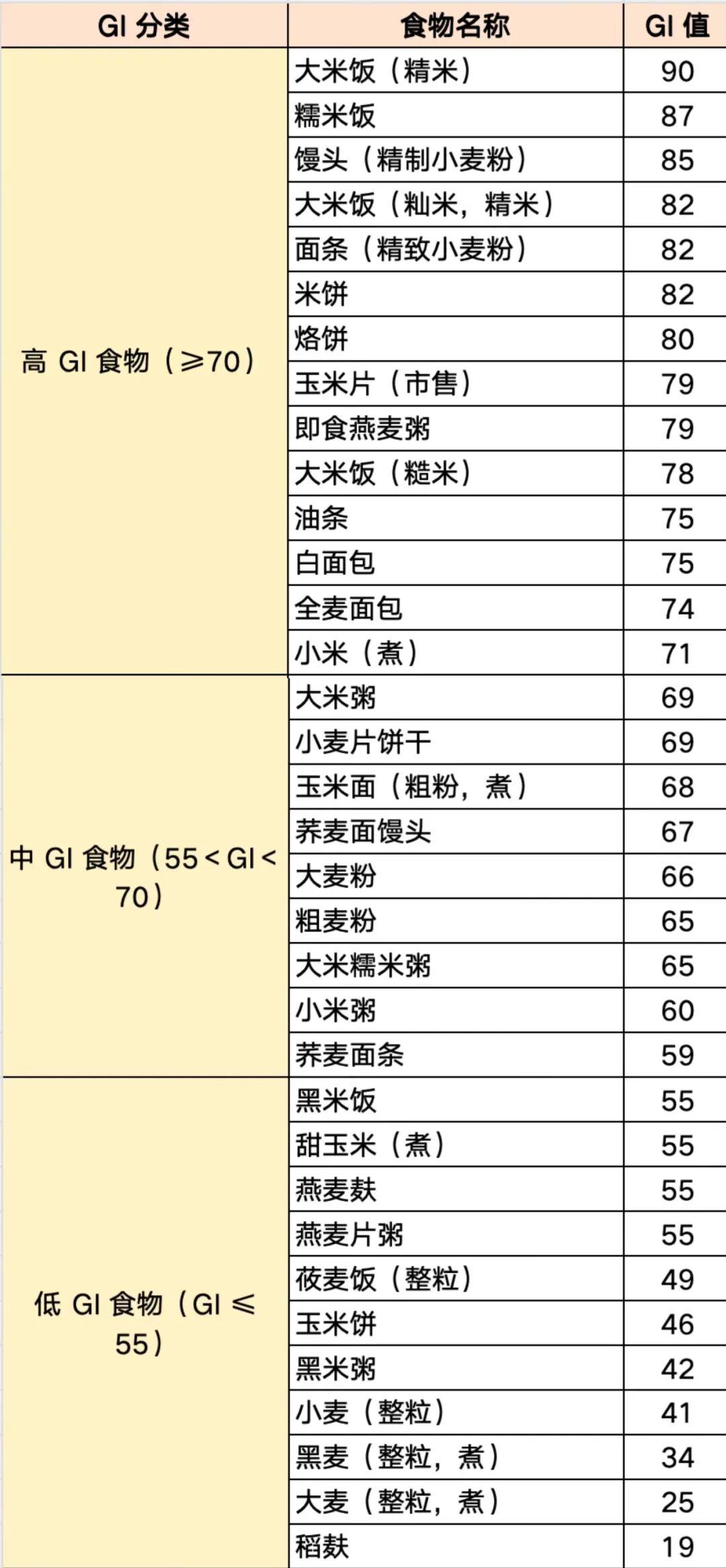 *這裏也給大家再做個科普,血糖負荷(GL,Glycemic Load)是指一定量的某種食物所產生的血糖應答和胰島素需要的程度,計算公式是食物GI值 x 食物中碳水化合物含量(克)/ 100,它反映了碳水化合物的數量對血糖的影響。