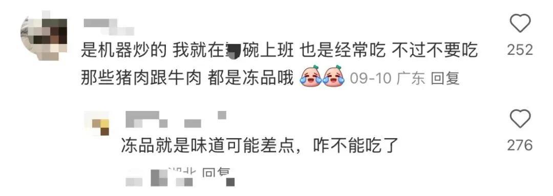 圍繞其他外賣的問題是:“它是不是預製菜?”而圍繞蓋碼飯的問題則變成了:“機器人炒的菜,算不算預製菜?”
