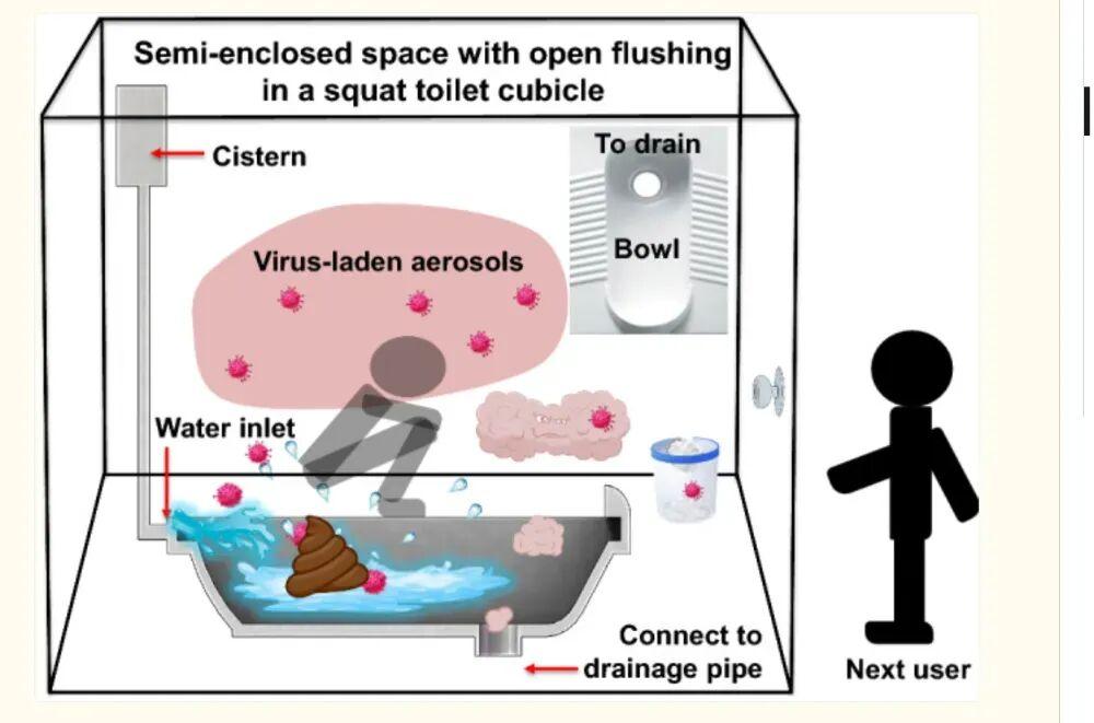 蹲坑的時候,人的口鼻更接近有病原體的氣溶膠,圖片來源:參考文獻3
