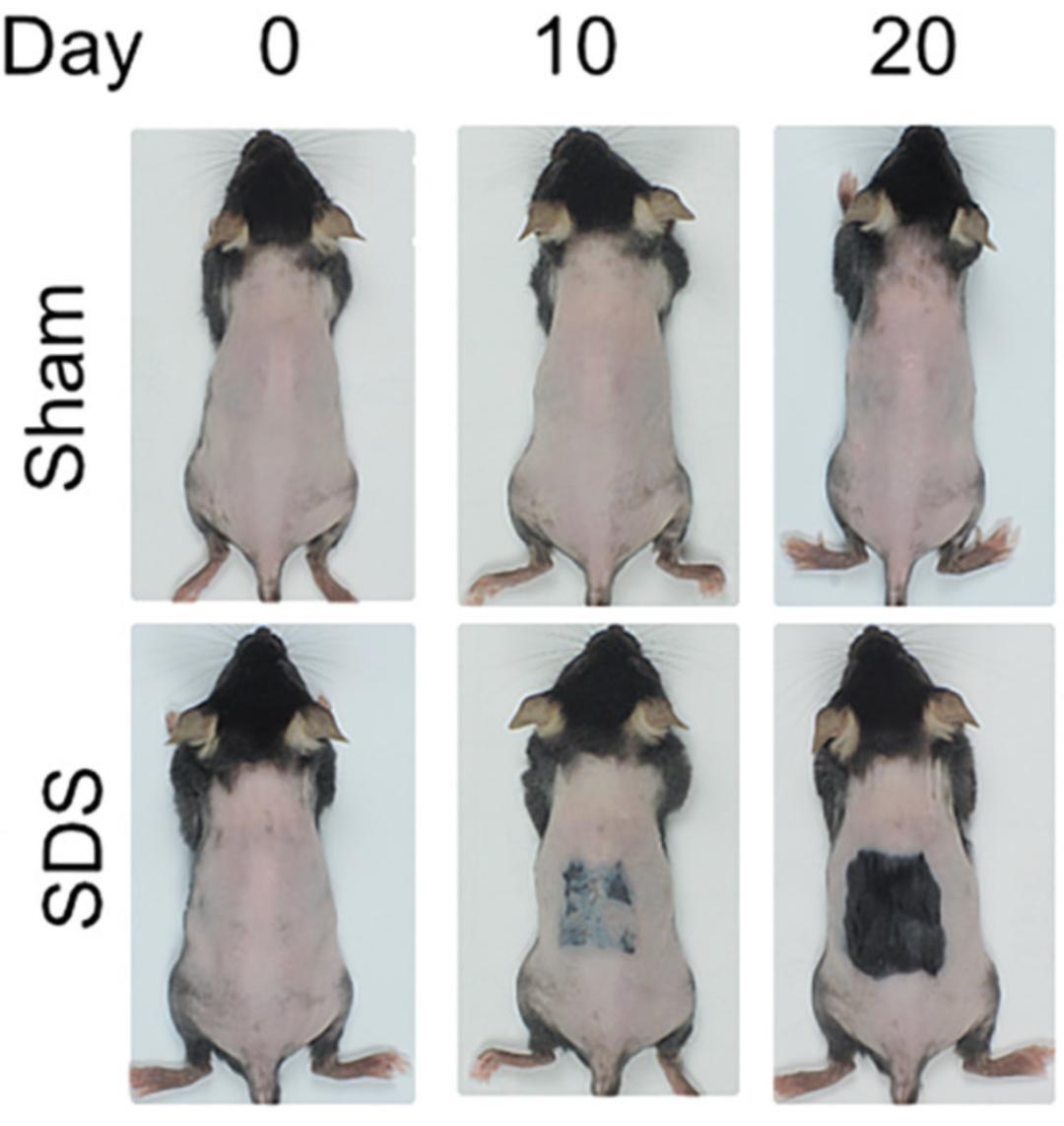 在空白對照(Sham)與 SDS 處理的對比下,SDS 組小鼠的毛髮生長明顯加速、密度更高,出現了和小紅書網友們一樣的長毛現象!