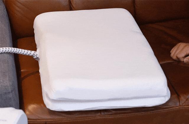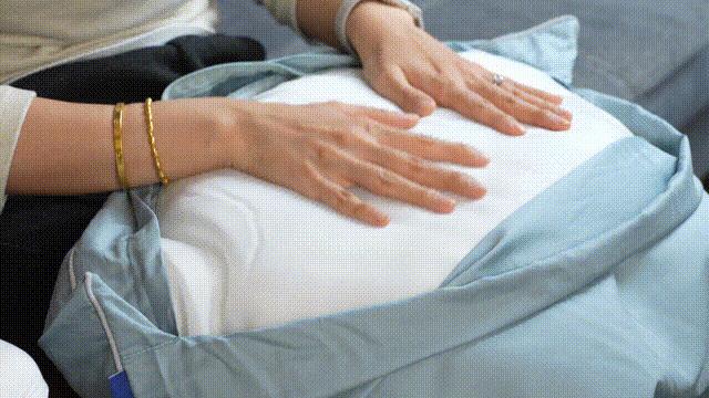我們將枕套套上試睡,女同事說 氣囊的鼓起是輕柔無感的,不會打擾正常睡眠。她覺得枕面只是輕輕微動的感覺,就像睡覺時手自然而然伸到枕頭底下,而且比手臂更輕柔。