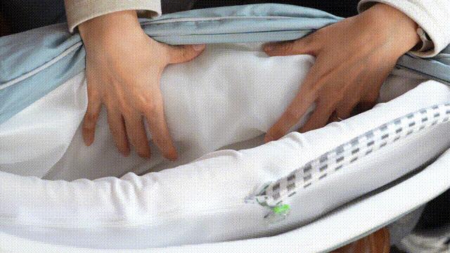 很多朋友看到這可能會想問:咱們睡覺一晚上不會只固定在枕頭中間,各種翻轉睡在枕頭各處,那枕頭的氣囊能跟住我們的腦袋嗎?