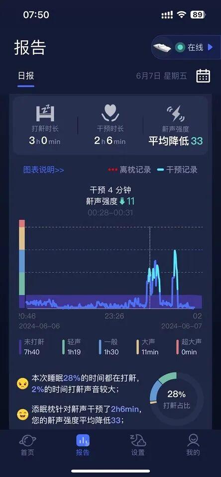 這份貼心的報告不僅細節豐富,讓你時刻了解自己改善打鼾的效果,還能 讓你作爲參考,去調節止鼾枕的干預強度。