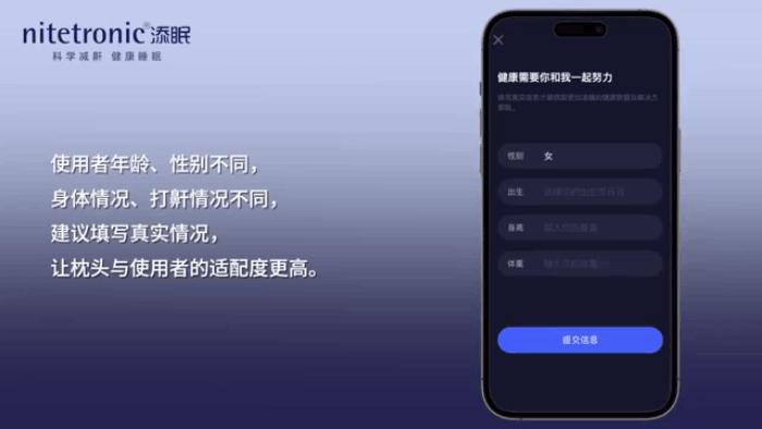 在APP上先 設置好個人情況參數,如身高、體重、年紀等,枕頭可以更好地爲你的情況來設置止鼾干預。