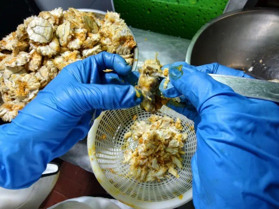主打本幫菜的雲和既講究“不時不食”,又強調精耕細作。眼下是食蟹季,店裏使用的蟹粉、蟹柳、禿黃油等全部當天現拆;春天上三蝦面時,同樣如此。傅海鴒說,拆蟹粉、拆蝦籽的阿姨有額外獎金,因爲“太費人工”;但另一方面,“手工現拆的與工業化加工的味道不一樣,所以我們堅持。”