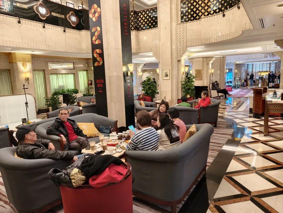 工作日下午的國際飯店大堂吧,上座率很高,有不少中老年人。