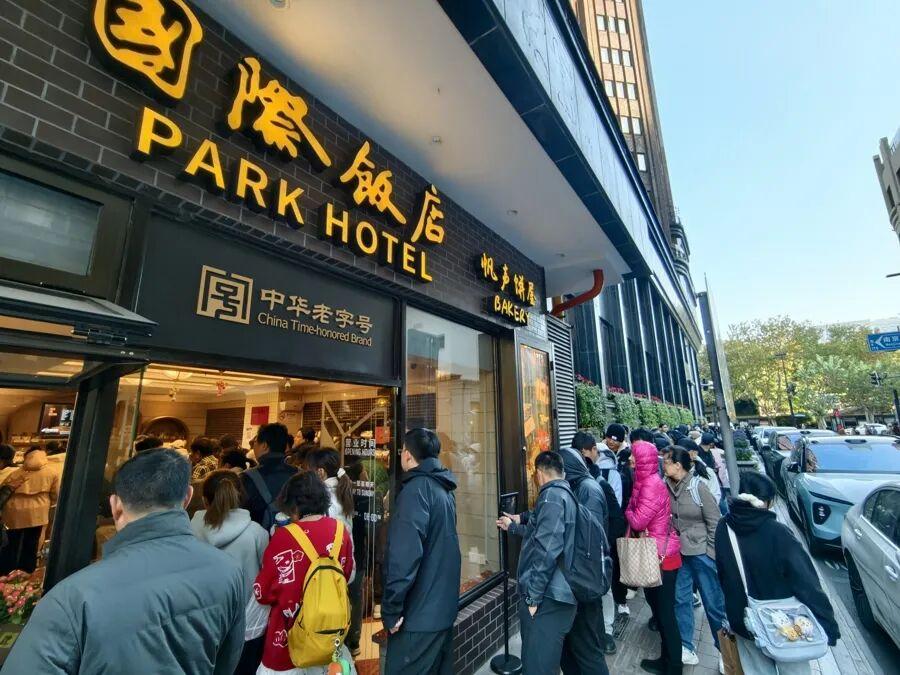 11月18日,上海大降溫,戶外體感溫度不到10℃,但國際飯店帆聲餅屋前等候買蝴蝶酥的隊伍仍舊排了幾十米。