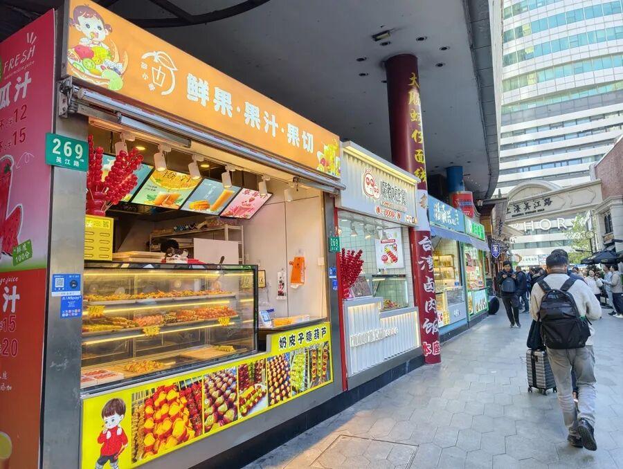 吳江路上,兩家賣奶皮子糖葫蘆的店鋪都沒有排隊,隨到隨買。