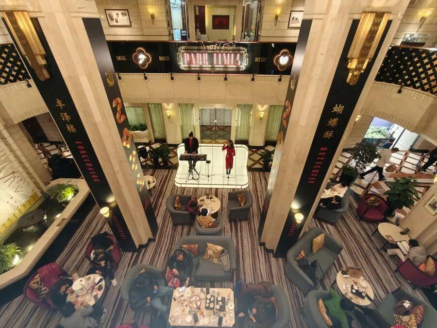 “講好‘上海故事’是我們的發力點之一。以下午茶爲例,之所以受歡迎,一來是我們的大堂吧海派風情濃郁,而且服務不斷增加,包括每天有兩場現場樂隊表演。二來下午茶的餐品會根據節令、市場熱點等及時調整。三來住店客人可以根據個人需求,選擇在客房內享用。”在現場消費者的餐桌上,不同的下午茶類型讓人眼花繚亂——有西點配咖啡的“西式套餐”,也有非遺中式點心配中國茶的“中式套餐”,還有一杯咖啡加招牌蝴蝶酥的“單人套餐”……這兩天《菜肉餛飩》火了,“中式套餐”更是第一時間增加了油煎菜肉餛飩。