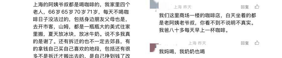 有網友好奇,上海上了年紀的消費者喝不喝咖啡,很多網友熱情回覆(網絡截屏)。
